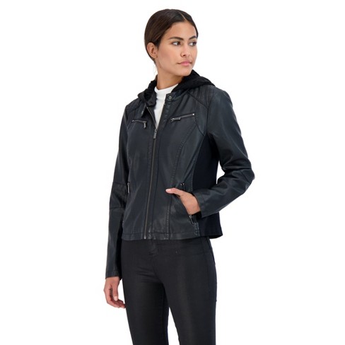 Jacket Womens Removable Hooded Leather Jacket.
