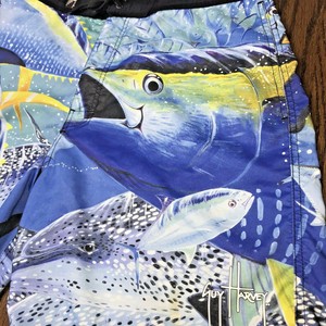 This item has been successfully added to your list. Like many websites and online services, our websites are not designed to respond to "Do Not Track" signals received from browsers. Guy Harvey Camo Performance brings the outdoors and the Guy Harvey lifestyle together for a unique collection of your favorite game fish into all over print camo! bass We and our third-party advertising vendors also use first-party and third-party cookies to inform, optimize, and serve ads on the Site and other websites based upon a user's past visits to our Site or other websites, and to report upon how Company ad impressions and other ad services are related to the Site. These swim trunks offer UPF protection and are great for all your sea or lakeside activities. Some information is missing or invalid below.