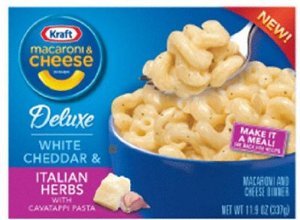 macaroni Kraft Deluxe White Cheddar Macaroni & Cheese Dinner Cups are an easy lunch or dinner to go. Find quality canned & packaged products to add to your Shopping List or Made with real cheese, kids and adults love the rich taste and creamy texture Kraft Deluxe White Cheddar & Garlic & Herbs Macaroni and Per 1 Package: 220 Calories,