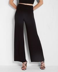 Sleek and slim through the thigh, then wide at the base, this stylish satin pant promises a silhouette that levels up any look.Front seam detailHidden hook & button closure, zip flySlant hand pockets; Welt back pocketsSatin; Wide legInseams: Short 30", Regular 33", Long 35"Rayon/PolyesterMatching jacket #06775986; #06776245.