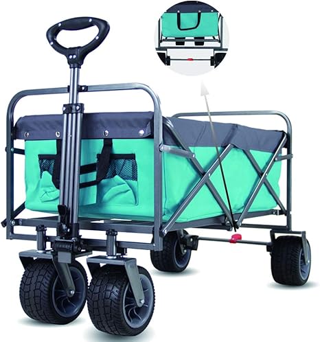 When It's Not Being Used, It Can Be Easily Stored in the Corner of the Car Trunk Or Closet. If You Are Looking for a Cart, This Model Has Excellent Wheels. All-Terrain Wagon Measures 31*20*33''(H*W*L), Whose Max Capacity Is 262L. The Collapsible Utility Wagon Cart Fold Size Is 11.4"x9.0"x24.4"(L*W*H). [Universal Wheels & Adjustable Handle] Equipped with Two Front Universal Wheels ,this Collapsible Wagon with Great Heavy Duty Is More Convenient to Use Than All Terrain WheelsBecause Wagon for Beach with Big Wheels Will Provide Some Control for You While Freely Controlling.Adjustable Handle Give You More Support When You Drag Your Folding Wagon Cart Outdoor, No Matter on a Flat Or a Rough Road. Buy with Confidence - One Year Warranty. Easy to Clean Off Sand- The Foldable Utility Wagon Is Made of 600D Oxford Fabric.