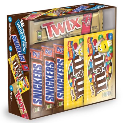 The Superhero Bars are milk chocolate bars, labeled with your favorite heroes on the wrapper, and there are even fun superhero phrases imprinted in the milk chocolate itself. Mars Snickers, Twix & More Assorted Chocolate Candy Bars Bulk Variety Pack (30 ct.) Sam's Club $ 19.98 AMAZON Mars SNICKERS, TWIX, & M&M'S Dessert Mix Assorted Chocolate Candy Bulk 18 Count 22.08-Ounce Box Amazon $ 15.99 There are only 150 calories per serving and only 25 mg of sodium per one-ounce serving. Prequalify. Hershey's Full Size Candy Bar Variety Pack - 30 Count