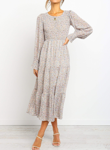 Ad from shop ByBaanoBoutique ThePatternSource $42.99, Sale Price: I feel like this is very flattering to my shape. From shop YANGAFashion, $57.41 From shop TheApplecartVintage, ad by BarbarasBoutiqueShop Round Neck Long Sleeve Floral Printed Shirred Midi Dress.