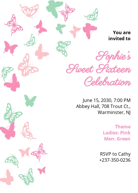 The 10 Best Butterfly First Birthday Party Invitations 2022 Bright butterfly Sweet 16 Birthday party Invitation vertical Template. These invites turned out adorable for my daughters birthday! Give Your Hands In Greeting Our Baby (NAME) A Happy 1 st Anniversary On (DATE) At (TIME).