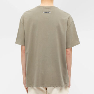 The Fear of God Essentials T-shirt in the Stone/Oat colorway has a small logo on the front chest. mrsorted