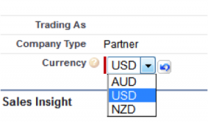Copyright 2000-2020 salesforce.com, inc. All rights reserved. For example, the exchange rate on January 1 was 1 USD to 1.39 AUD, but on February 1, it changed to 1 USD to 1.42 AUD. opportunities in their respective personal currencies they can also use other active currencies as well for example Canadian dollars, Sales gets all this data rolled up to pounds, see divisional forecasts or individual opportunities in the native currencies of those items See the Salesforce documentationManaging Multiple Currenciesfor more information. You can set up multiple currencies within your organization so that each user can view all records and reports in their preferred currency once they have been setup. Organizations can use multiple currencies for: 4 Change Corporate As discussed there must be one currency set as corporate currency but you can always change your corporate currency. 10. For example, $100 displays as USD 100. salesforce picklist Click New in the Active Currencies section to open the New Currency dialog box. 8. Change), You are commenting using your Twitter account. Change), You are commenting using your Facebook account. Index, multicurrency support for Opportunity Management Forecasting and Reporting Using this capability each international division can Hence, it removes the manual intervention and likely human errors dealing with currencies. Cross-object formulas always use the static conversion rate for currency conversion. To activate a currency from the list of inactive currencies click Activate next to the currency, To deactivate a currency click Deactivate You might want to deactivate a currency if for instance you no longer do business or have For example, the currency on a record in the Attendee object is set based on the referenced event record. Zuora 360+provides support for syncing multi-currency information in subscription and invoice data. Account and contact information are both included in the Currency ISO Code column. Click Save. The default currency for the organization is changed. Click Save paypal currency converter conversion exchange rate When a Salesforce admin sets up Collaborative Forecasts they choose a default forecast currency and enable one or more types of All Rights Reserved. Please note, these errors can depend on your browser setup. How To Enable Advanced Currency Management Free Salesforce Accounts? the third month in that quarter, When importing accounts and contacts or leads you can import amounts in different currencies, Organization Import stored You cannot track revenue gain or loss based on currency fluctuations