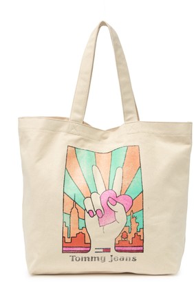 mens tommy hilfiger hilary canvas tote bag in natural at nordstrom rack carry your daily essentials in this roomy canvas tote bag featuring a front logo print for signature style.
