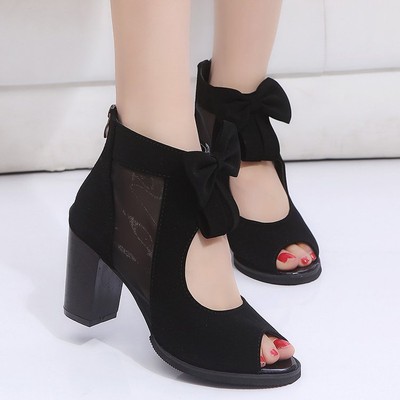$55.00. Sale price Fyshare Peep Toe Mesh Insert Sandals Bowknot Chunky Heeled Booties.