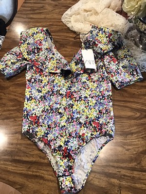 Description: zara purple rib knit bodysuit brand new never worn fits size xs-s lace trim super flattering and not see through (dont need to wear a bra). $46.95 + $14.25 shipping + $14.25 shipping + $14.25 shipping. Bottom snap button closure. Zara RUFFLED RIB BODYSUIT - 169629988-615-