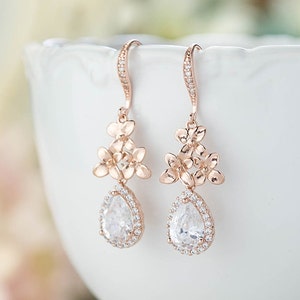 This beautiful style features round, brilliant diamonds framed in 14k rose gold and is a piece of jewelry you'll love and cherish for years to come. Absolutely! Ad from shop birdshome FREE shipping, ad by GlitzAndLove swarovski dangle earrings gold 18k teardrop crystals prom bridal rose Original Price $28.00 The seller might still be able to personalize your item. Click Buy it now or Add to cart and proceed to checkout. These intricate teardrop rose gold drop earrings have small crystal accents. Simply select three letters to display on the chain and choose from three different metals to create a one-of-a-kind and personalized piece of jewelry. Inspired by vintage design elements, these chandelier wedding earrings strike the perfect balance of trendy yet timelessness. Ad from shop TheMillenniumBride