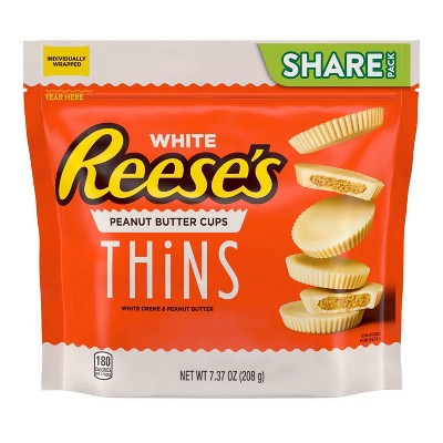 peanut butter cups REESE'S THiNS Peanut Butter Cups are the same great flavor combination, with a thin cup perfectly sized for sharing and snacking. Reese's White Sweet Tooth Expert Level 4. reese Reese's 2 Peanut Butter Cups, Milk Chocolate & Peanut Butter (1.5 Recipe Instructions Preheat Oven to 375.