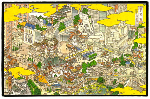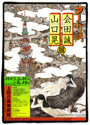 El segundo evento es otra exposición que tendrá lugar en Tokyo, en el Museo Ueno-Mori. Comenzará el próximo día 20 y estará prácticamente un mes, hasta el 19 de junio, y está centrada en dos artistas cuya obra conocí no hace mucho: se trata de Makoto Aida (Niigata, 1965) y Akira Yamaguchi (Tokio, 1969). El primer artista nos ofrece una variedad de temas tan diversos como impredecibles, como el sadomasoquismo, la sátira política o el humor absurdo. El segundo de los artistas utiliza una vieja técnica tradicional conocida como Yamato-e, que es propia del período Heian (794-1185), caracterizada por escenas de paisajes rurales, referencias estacionales o espacios planos de vívidos colores. Pero si miramos con atención la obra de Yamaguchi observaremos que sus pinturas están repletas de una mezcla de gentes y edificios pertenecientes a una amplia variedad de eras, desde el presente al período Edo (1603-1868) o al período Sengoku (1467-1603). El efecto que consigue esta disparatada mezcla de elementos que sobrepasan las limitaciones del espacio y el tiempo, uniéndose tan melodiosamente, es de un sentimiento totalmente contemporáneo.