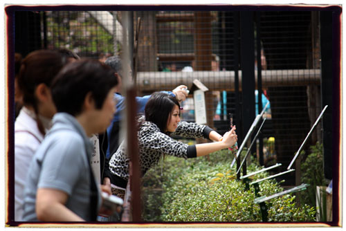 Casualmente uno de estos eventos tuvo lugar en Kobe (el otro fue en Tokyo), en el zoo de Ouji. Yito se las arregló para conseguir dos invitaciones para el día 13 de abril. Allí nos recibió la gente de Canon que nos entregó como préstamo durante unas horitas un equipo que constaba de una cámara EOS Kiss X2, un objetivo EF-S18’-55mm F3.5-5.6 IS y otro EF-S55-250mm F4-5.6 IS. Y el resultado de ese ratito en el parque zoológico lo tenéis aquí mismo. Espero que lo disfrutéis, para nosotros fue una experiencia deleitosa, era la primera vez que “jugábamos” con una réflex digital (y mucho me temo que se avecina continuidad).