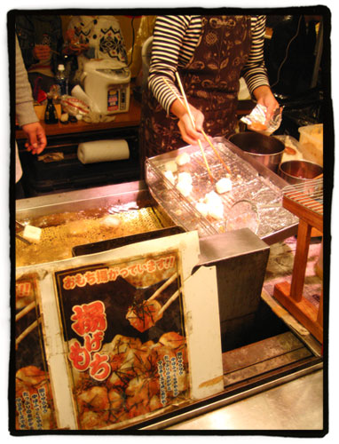 …al agemochi (mochi frito condimentado con kinako)…: