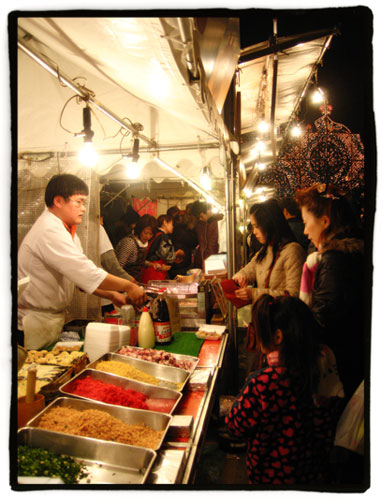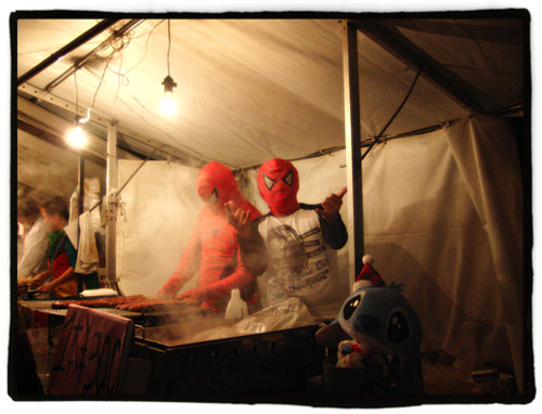 Interesantes los puestos de comida que montan por allí. Me recuerdan al mercado medieval que montan en mi pueblo por estas fechas con ese olor a comida y las calles llenas de gente (salvando las distancias obviamente).