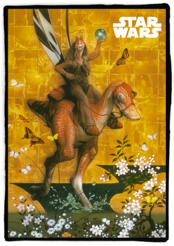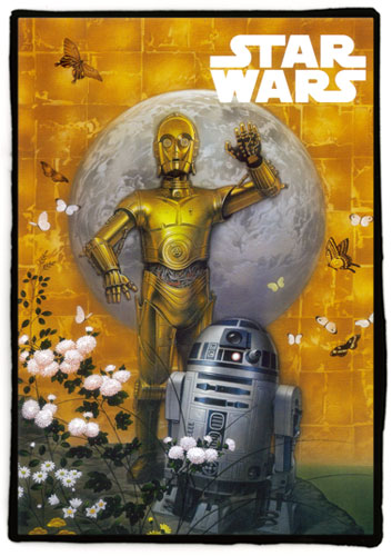 Os muestro las postales que recibí hoy de Minako. Son tres curiosas estampas que Heart Art Collection produce para The Oficial Star Wars Fan Club en Japón. El fondo está dibujado en un intento de imitar la técnica artística japonesa denominada Kabuki-mono, algo que reconozco que hace mucho mejor Tenmyouya Hisashi.