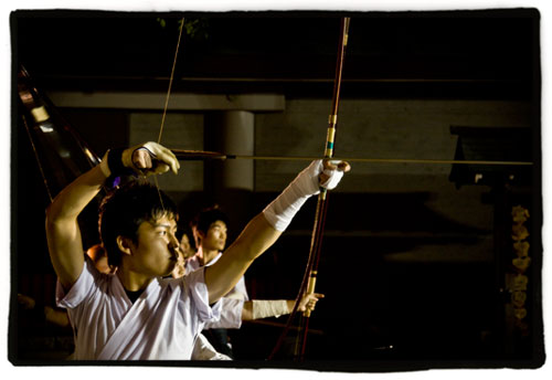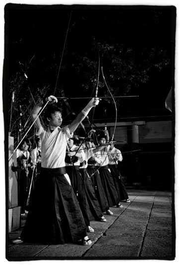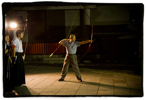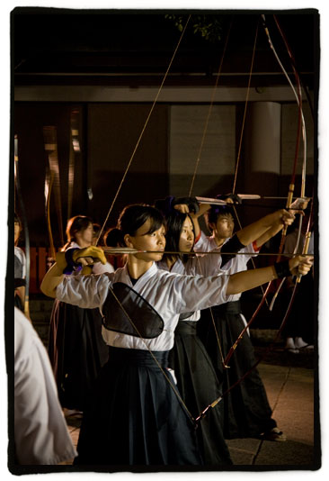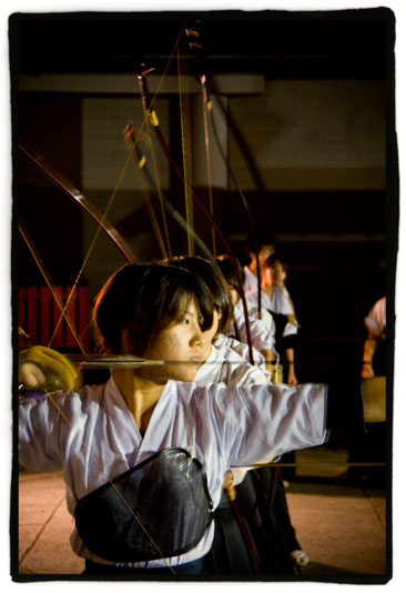 Cuando llegué a Kobe, antes de apuntarme al YMCA, me iba a correr por las mañanas y a menudo me encontraba a miembros del “kyuudou kurabu” practicando en las instalaciones de la Gaidai. Aunque quizá tenga demasiado de liturgia, debe de ser una práctica altamente gratificante. Una referencia: Herrigel, Eugen _Zen en el arte del tiro con arco_; libro muy citado, aunque también ha sido criticado.