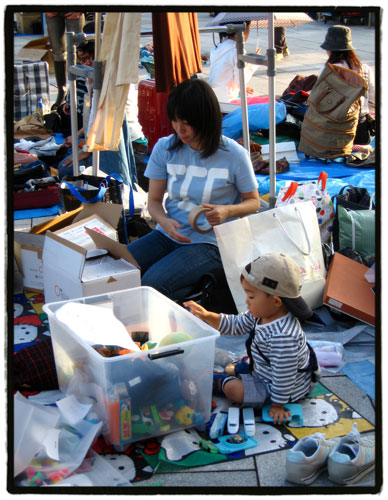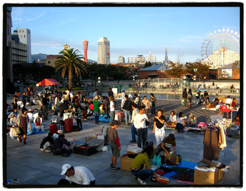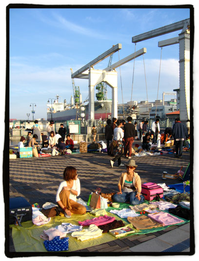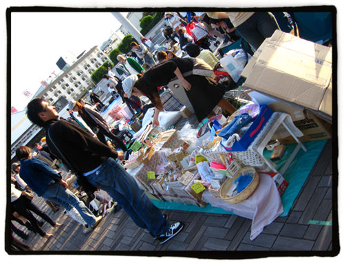 En Kyoto vi el otro dia un mercadillo igual en frente del ayuntamiento en Oike-dori, donde hay una explanada bastante grande. Como bien dices, el 90% de lo que vendían era ropa, y por lo general eran chicas jovenes vendiendo sus ropas y zapatos. ¡Me parece que estas japonesas se gastan demasiado en ropa xD!
