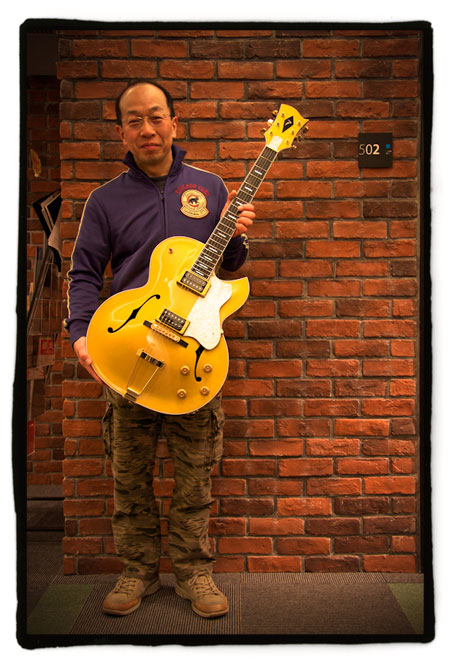 Hace pocos días tuve el placer de ver su última obra, la hermosa guitarra de jazz que veis en las fotos.