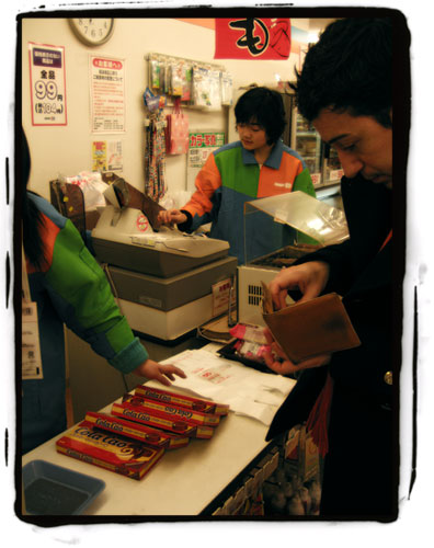 Ayer domingo pasaba frente a un convinience store de esos llamados “Kyujuukyu” (99), nombre que adoptaron en clara referencia al precio de sus artículos. Hace tiempo que mi amiga Chihiro me avisaba de que estas tiendas habían comenzado a distribuir los famosísimos “Phoskitos” españoles bajo el nombre de “Colacao”, tres pastelitos a 100 yenes. En aquel momento salí a buscarlos pero no los encontraba por ningún lado.