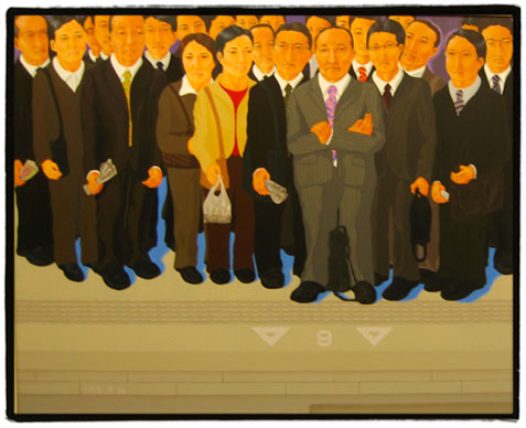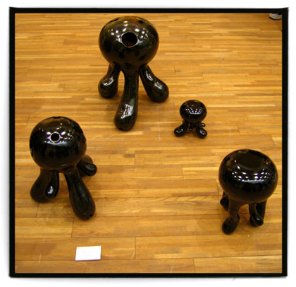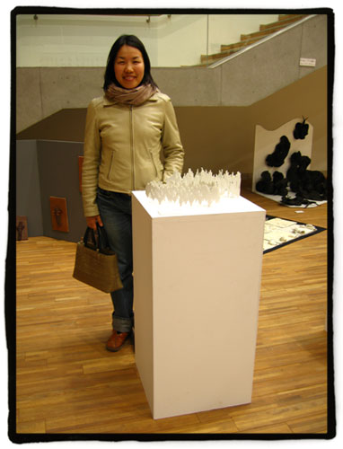 Como os decía, el principal objeto de mi visita era encontrarme allí con Kayoko para ver su obra, puesto que se trata de la obra de final de carrera, algo que ella ha ido creando durante un tiempecillo importante, de modo que no quería dejar pasar esta ocasión. Además Kayoko se merece que yo vaya a verla a Kyoto y a donde sea ;-), porque es una gran persona. Aquí tenemos su obra, titulada “Kimochi”, que podríamos traducir por “humor”, “estado de ánimo”: