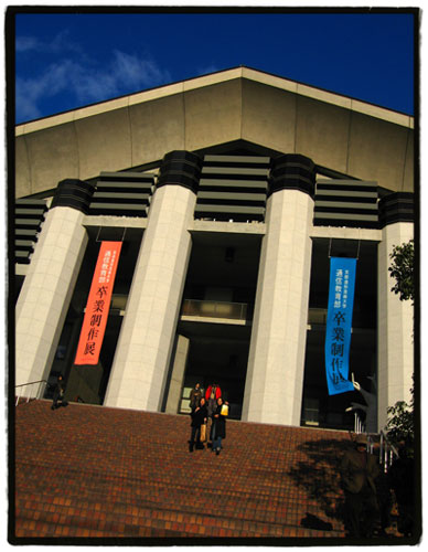 Ayer pasé por Kyoto para visitar la exposición de arte que había en la Zokei Daigaku (la Universidad de Arte y Diseño de Kyoto) con motivo de la reciente graduación de los alumnos de los cursos a distancia. Una buena amiga, Kayoko, está entre las personas recién graduadas, y me apetecía ir a ver su obra. Y lo cierto es que nada más llegar al lugar ya me estaba alegrando de haber dado el paseo desde Kobe, a pesar del intenso frío que hacía por allí.
