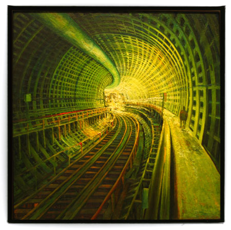 La de las bolas negras está muy bien, pero la que me gusta especialmente es la del tunel del metro, me recuerda muchísimo a las ilustraciones de H.R. Giger, aunque más colorista claro jeje.