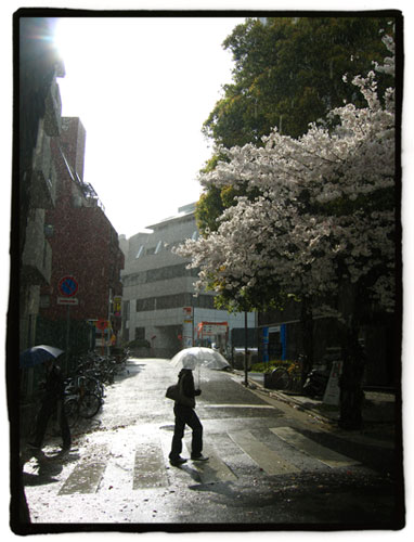 Me quedé con las ganas hace dos días de pasar más tiempo por las calles de Kenchou Mae, aquellas que veíamos en el anterior post, donde los sakura. Hoy tuve un ratillo y de vuelta a casa me pasé por allí. Estamos en abril, y ya se sabe, aguas mil. De momento esta mañana amaneció gris y con algún chubasco, y las temperaturas recordaron el invierno al mercurio y de paso a mi también. Hace un rato miré el termómetro del aire acondicionado y marcaba 6 grados en el exterior.