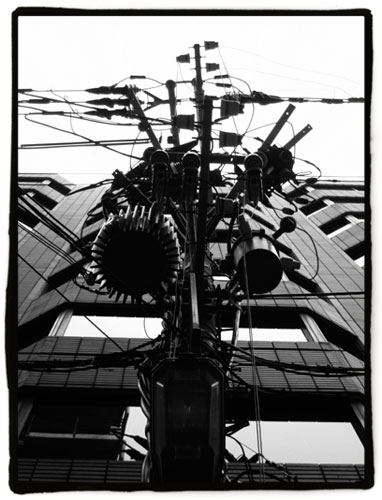 Le mostraba esta foto Julepe hace un par de días y me decía “no sé por qué pero me recuerda Evangelion”. La verdad es que uno está tan acostumbrado a ver estos postes de alta tensión por las calles que lo único que me pueden recordar es como se mecían sus cables durante el primer terremoto medio serio que viví por acá hace ahora dos años y medio: