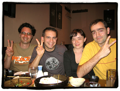 Fue una buena ocasión para conocer a gente muy maja, que pena que la reserva del local fuera sólo por dos horas (que puesto que somos españoles se traduce en esas dos horas más una prórroga de cuarenta y cinco minutos, demora que ya empezaba a dejar ver algo de tensión en las caras de los que trabajaban en el izakaya… 😉 ).