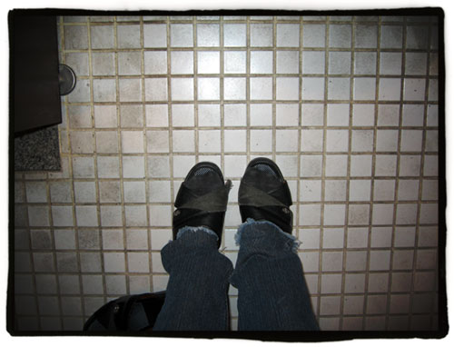 Una cosa que me marcó bastante fueron las zapatillas que tenía que calzarse uno en los servicios del izakaya, de verdad que la primera vez que entré me creía que me había metido en los de señoras…, ¿tienen delito las zapatillas o no?: