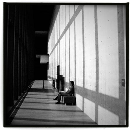 Esta la tomé en el Museo de Arte de la Prefectura de Hyogo (en Nada), a donde fui el domingo pasado para ver una exposición bastante interesante sobre Rodin. El señor que aparece estaba tomándose un descansito. La tarde invitaba a ello.