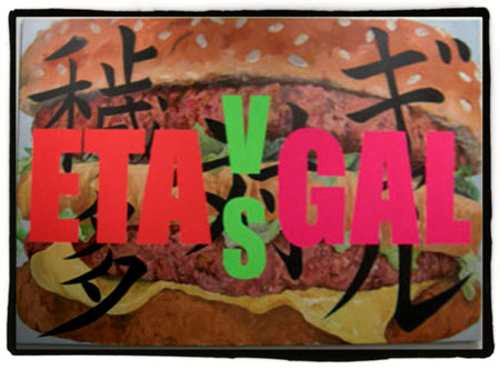 La XXV edición de ARCO abre hoy sus puertas al público. No faltan las propuestas provocadoras, como esta de Makoto Aida que superpone la leyenda “ETA vs GAL” a una hamburguesa. Según explica el artista “E-ta” hace referencia a una de las clases más bajas del antiguo Japón. A nadie le gusta que le asocien con esta casta. Es un problema como, ETA, la banda terrorista, lo es para los españoles. “Gal” son las chicas que cuidan hasta el extremo su aspecto físico.