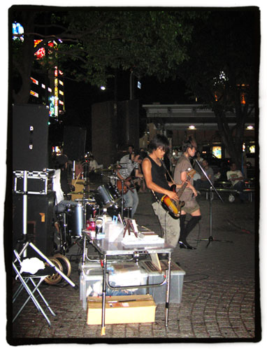 Me resulta extraño que siendo los japoneses tan cívicos en todos los aspectos sea tan normal que cualquier grupo de musica pueda armar tanto ruido en plena calle. ¿Cuantos vatios de sonido producen esos altavoces?. Creo que en España necesitarias un permiso especial para montar un mini-concierto parecido.