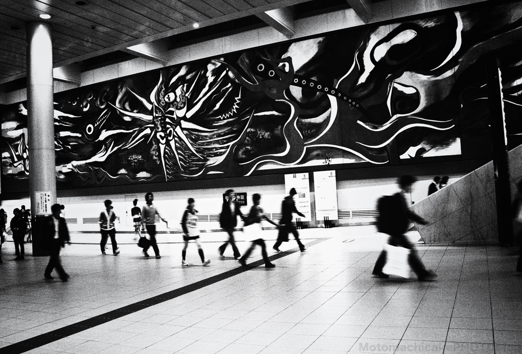 Mural by Okamoto Taro in JR Shibuya Station, Tokyo.
