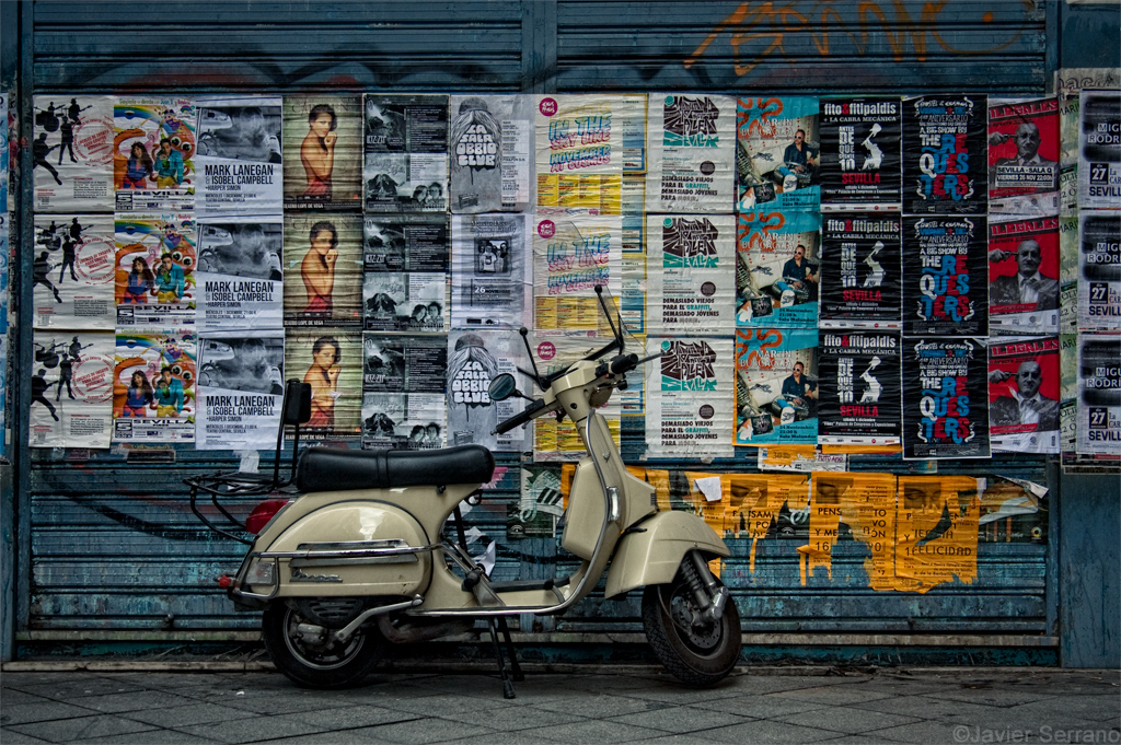 No sé si habéis caído en la cuenta de que uno de los carteles es del grupo «Ilegales»… siguen vivos! La moto es preciosa.