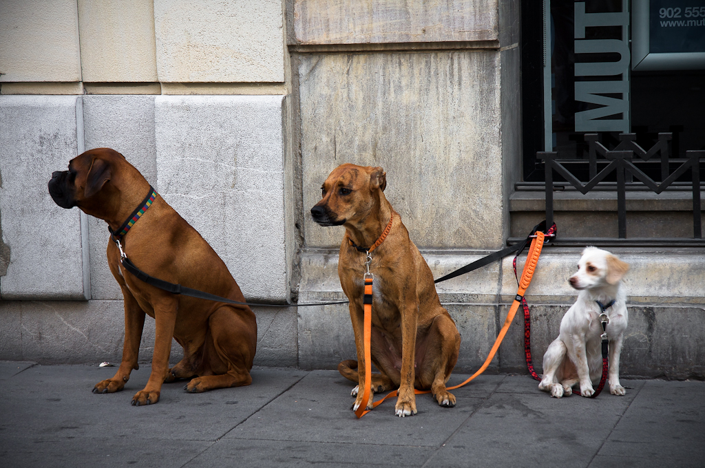 Three dogs waiting for the dog-walker. Taken in Seville.