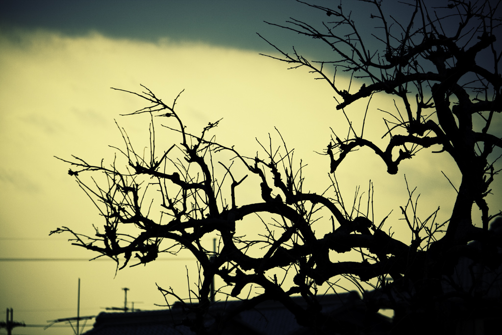 Hola, Besapiens. Realmente retoqué el color y el contraste con Photoshop. En el momento en que tomé la foto el color del cielo era algo más tenue, con las últimas luces del día y con pequeños copos de nieve aún flotando en el aire. Minutos más tarde, cuando ya había guardado la cámara en mi mochila para volverme a Kobe pude presenciar una de las puestas de sol más hermosas que jamás he presenciado.